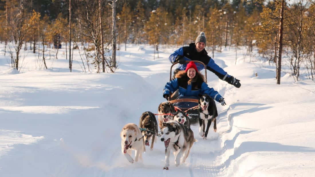 Tauchen Sie ein in die atemberaubenden Schneelandschaften Finnisch-Lapplands und erlernen Sie mit liebenswerten, gut ausgebildeten Huskys eine typische arktische Fertigkeit. Buchen Sie noch heute Ihre 5 km lange Hundeschlittentour von Levi aus!