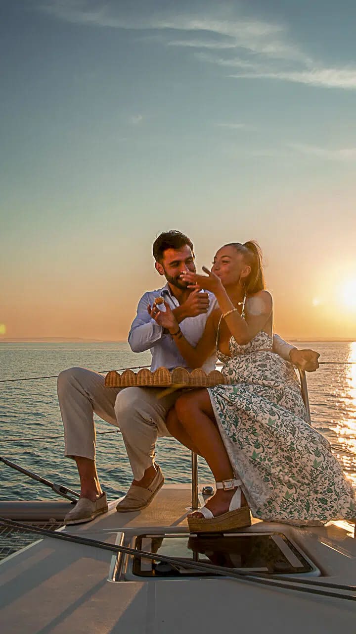 Come aboard Mademoiselle Lucile, a premium catamaran with a luxurious design, for an evening of refinement and serenity. This sunset cruise is designed to offer an intimate experience: with just 20 passengers maximum on board, you'll enjoy generous space and a peaceful atmosphere, far removed from the hustle and bustle of traditional group outings. As soon as you arrive, you'll be served a welcome drink to start off this enchanted interlude overlooking the horizon.