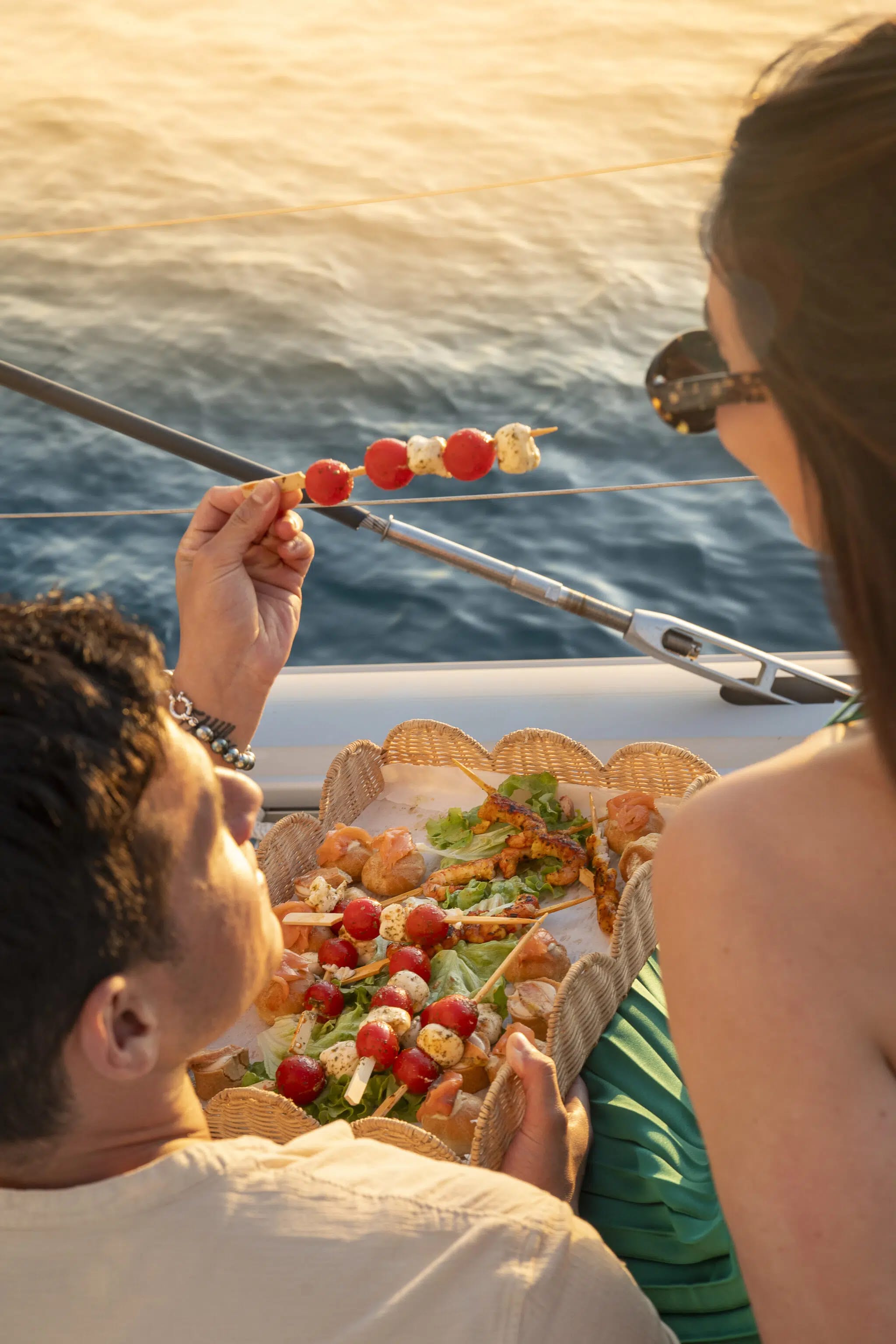 Gentle sailing in the Gulf of Aigues-Mortes takes you out to sea as the light turns golden. This is the perfect time to discover an assortment of tapas carefully prepared by the chef on board. Comfortably seated on deck, lulled by discreet lounge music, you can savour these local flavours while admiring the spectacle of the sun plunging into the sea.