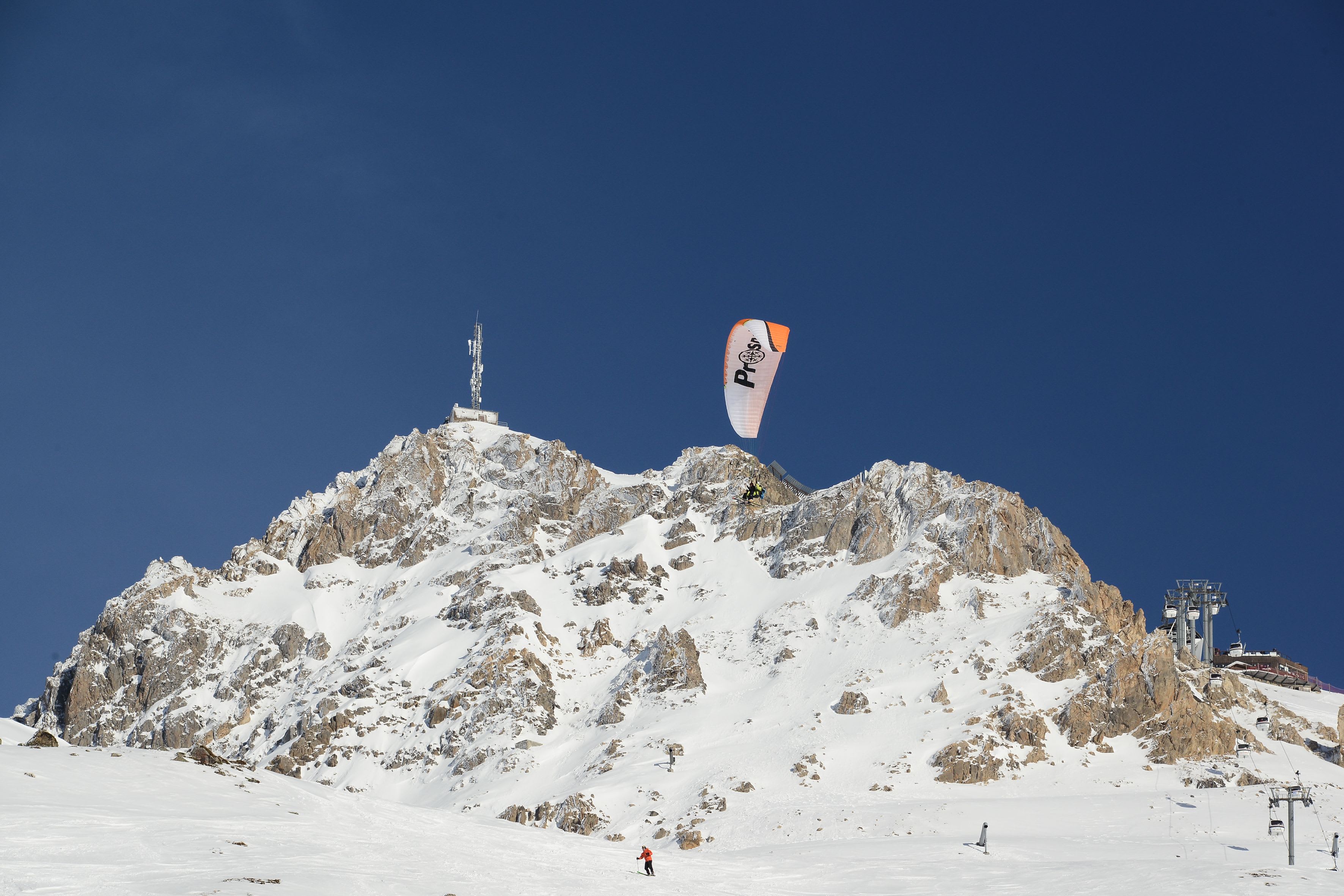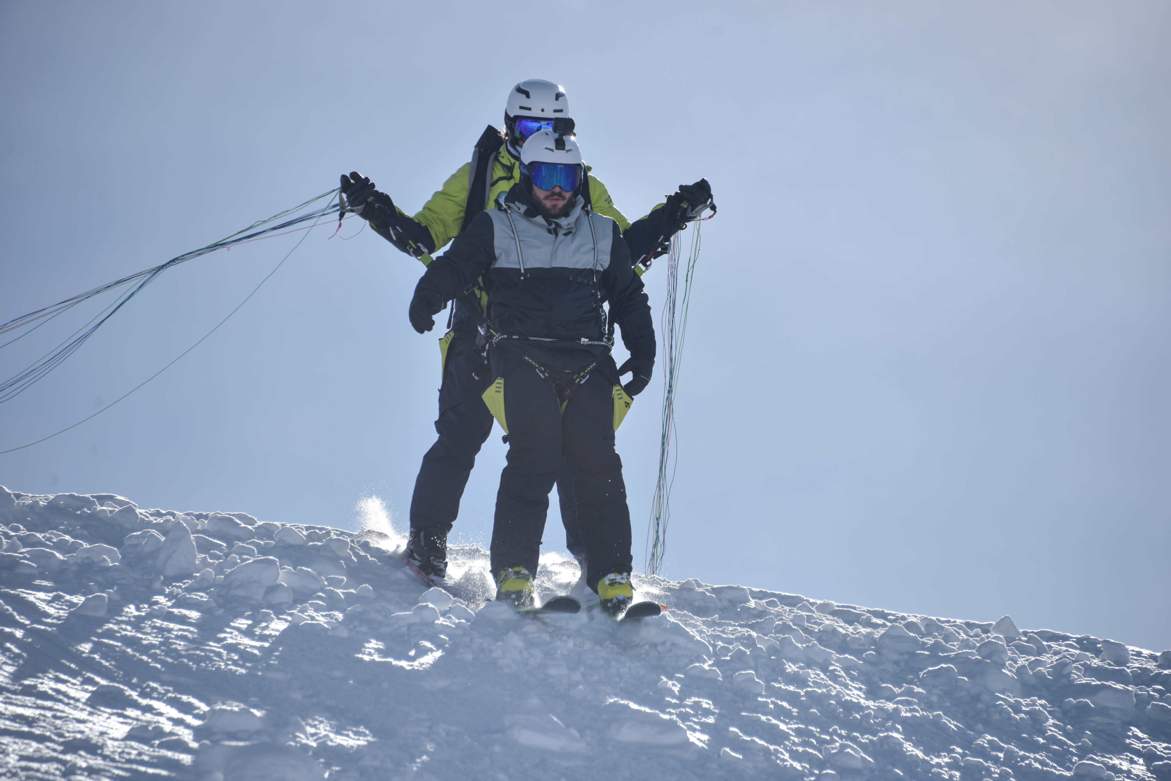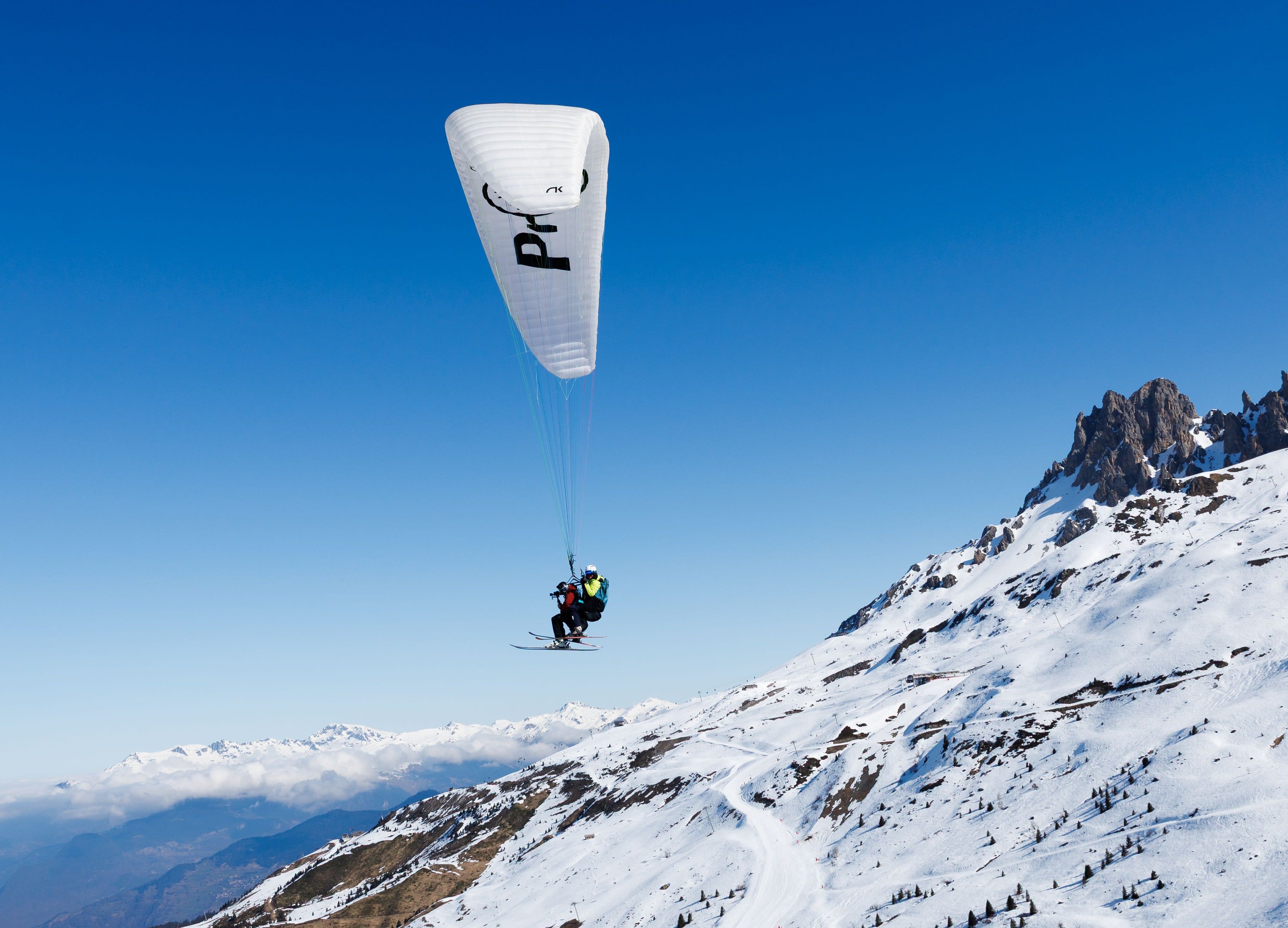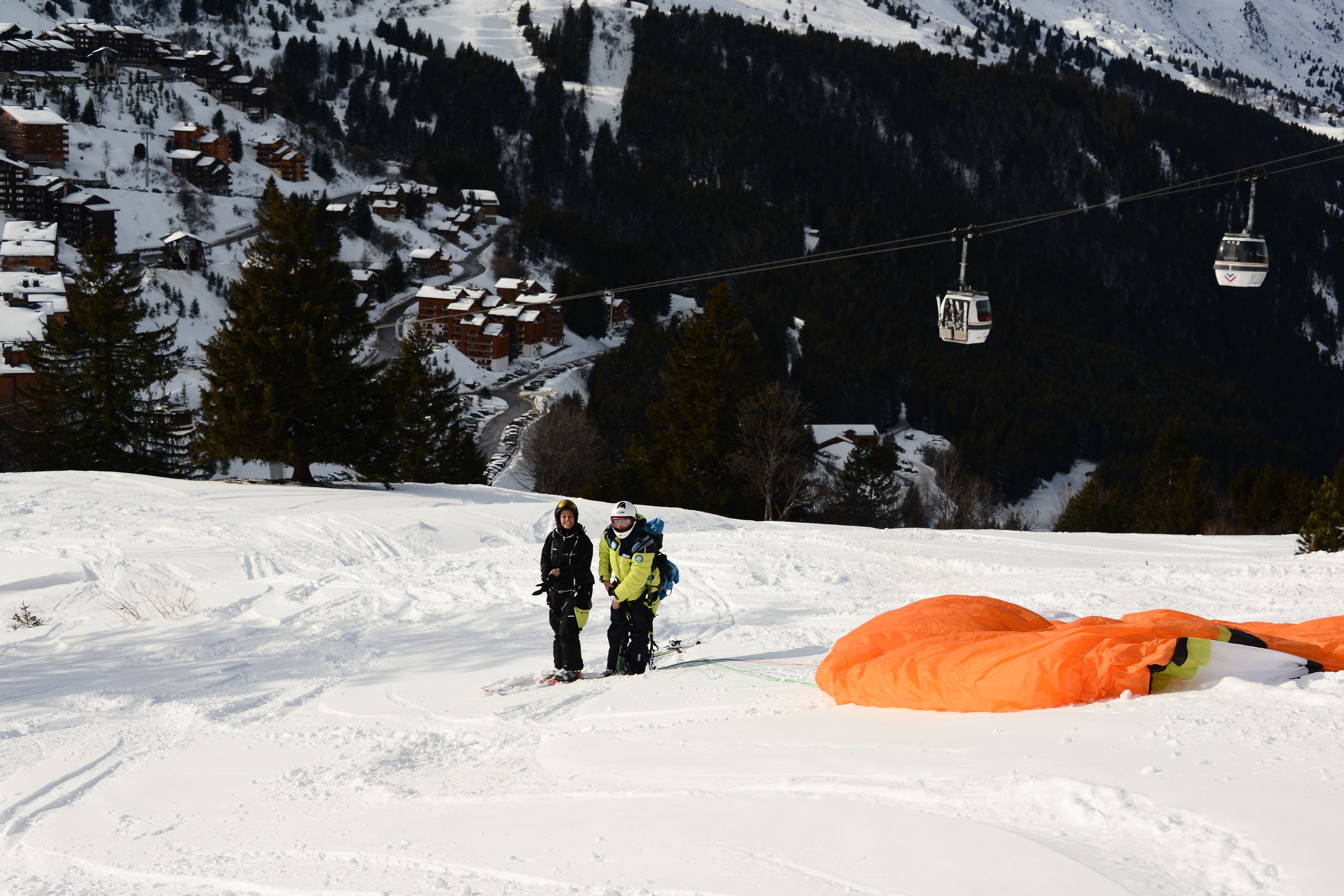 Tandem Ski Paragliding Flight in Méribel from the Summit of Saulire