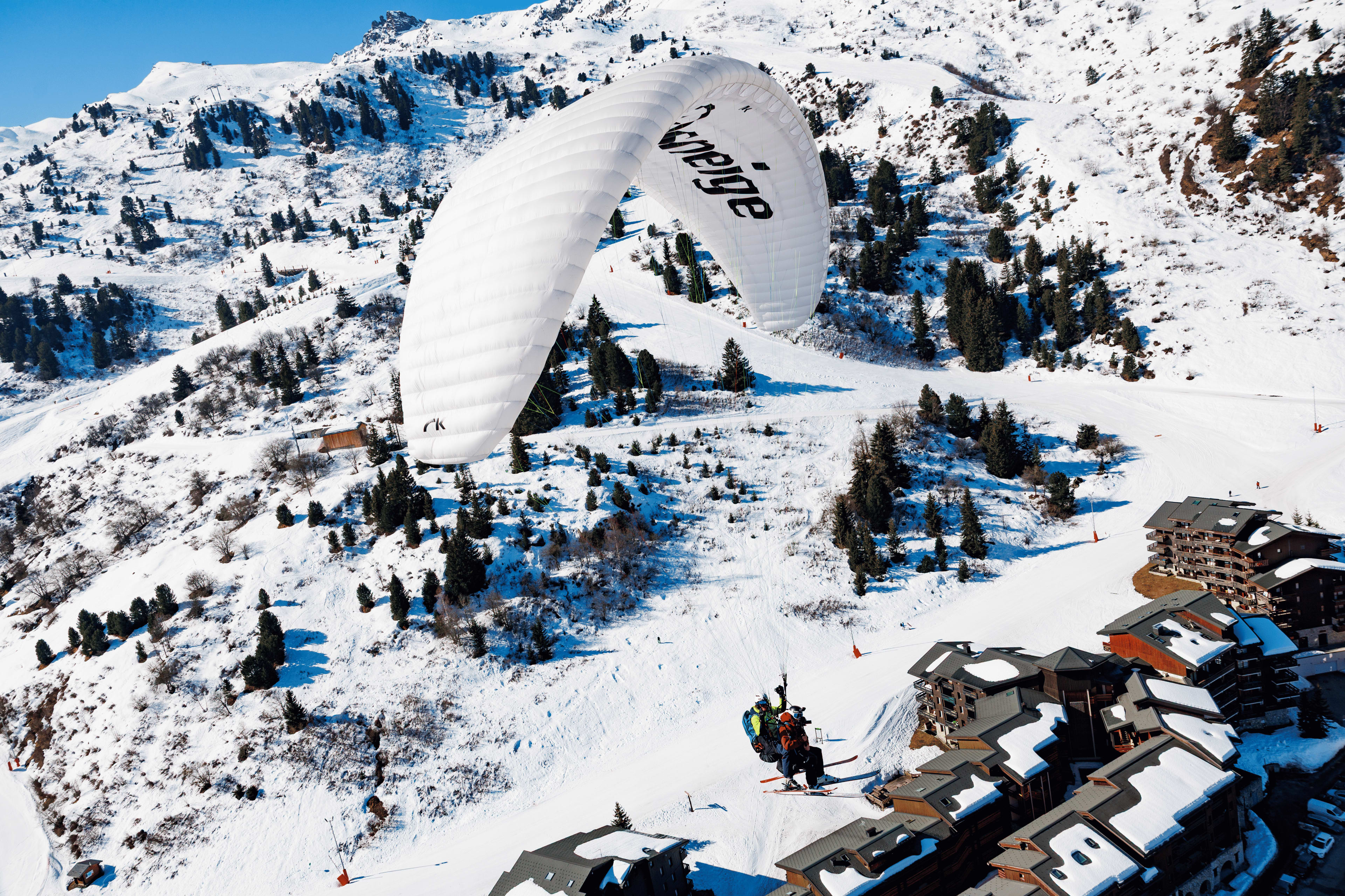 No previous experience is required, whatever your level. Your ski paragliding flight in Méribel will be fully supervised by a qualified and highly experienced state-certified instructor. After a short briefing, you’ll take off smoothly for a safe and unforgettable winter flight, during which all you need to do is relax and take in the scenery. For around 15 minutes, you’ll enjoy breathtaking aerial views of the Saulire summit and the striking Dent de Burgin.
