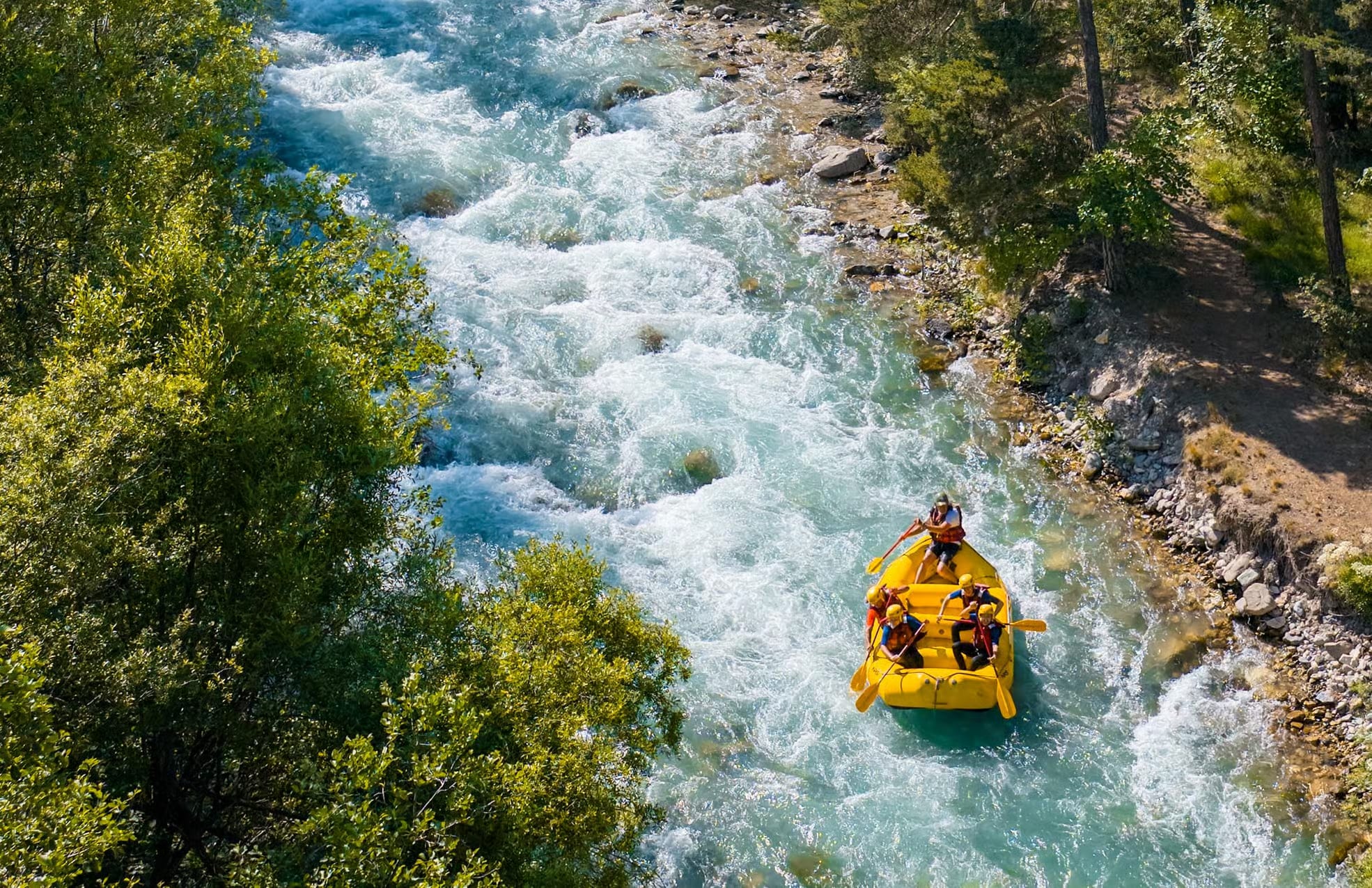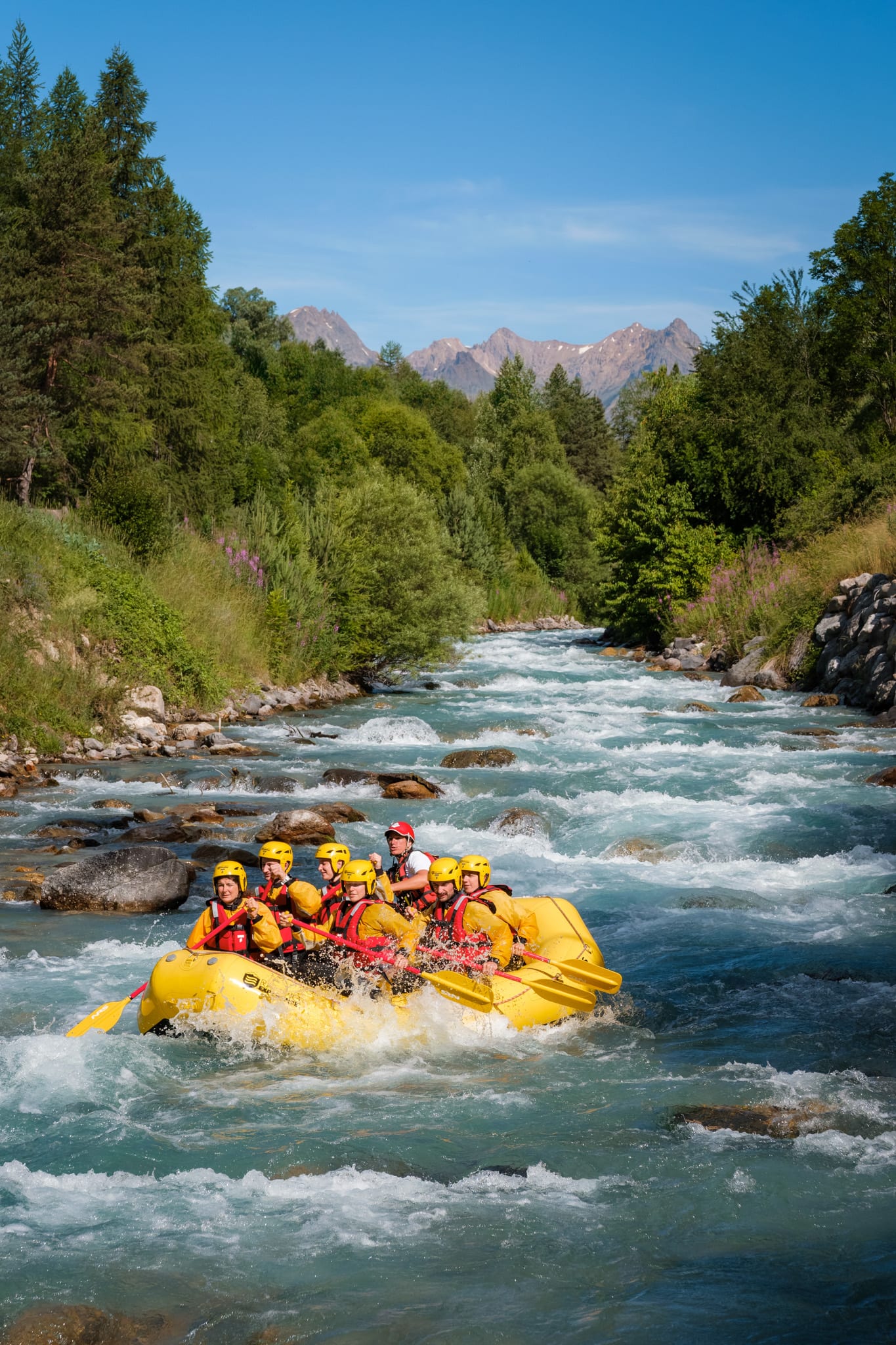 Stretching nearly 28 km, the Guisane River is a must for white-water sports in the Hautes-Alpes. It is divided into several sections, each with rapids of varying difficulty levels, making it suitable for all abilities and preferences. So if you are heading to Serre Chevalier this summer, don't miss the chance to go rafting on the Guisane River from La Salle-les-Alpes! From their base at the Pontillas lake, the Rafting Expérience team invites you to set off on a rafting adventure along whichever course suits you best: