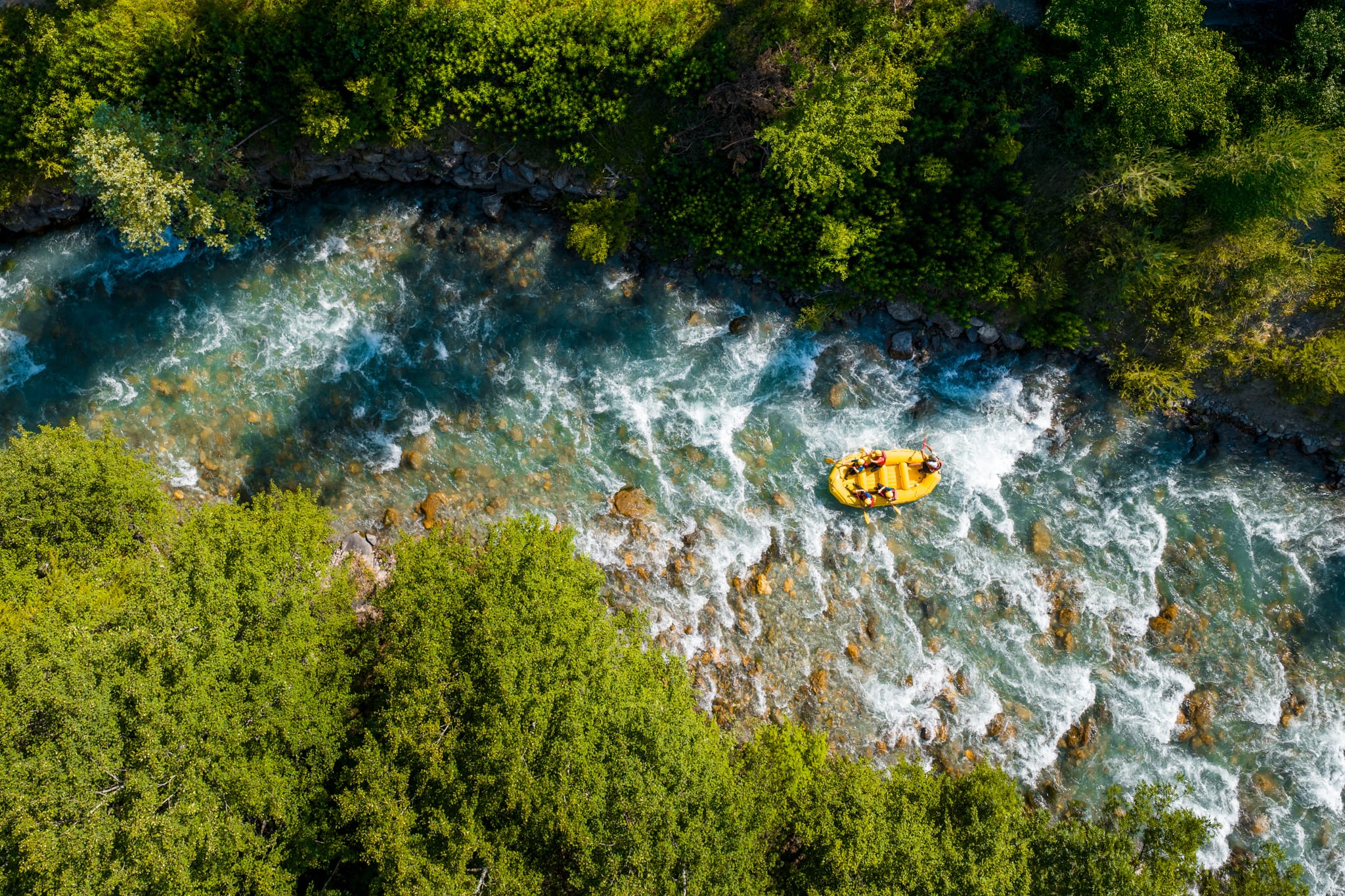 The variety of rafting courses on the Guisane River is ideal, with rapids ranging from class I (very easy) to class IV (sporting level) to suit all tastes. With a maximum of 8, or even 6, participants per raft, you will enjoy an unforgettable adventure, in complete safety, accompanied by a state-certified instructor and equipped with all the necessary gear, including a wetsuit to keep you warm in water temperatures of around 8°C. So don't wait any longer and book your rafting descent on the Guisane River near Briançon now!