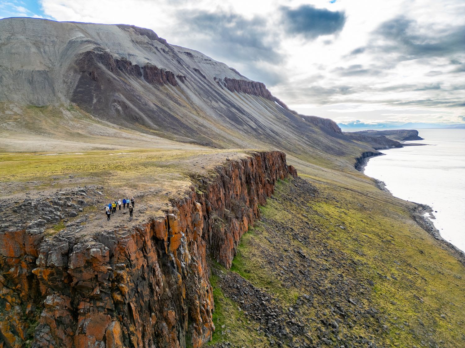 During the boat tour on Isfjorden, you'll pass steep mountains rising dramatically from the coastline. During the summer months in Svalbard, the cliffs along the fjord come alive with nesting birds such as king eiders, Brünnich’s guillemots, puffins, various gull species, and little auks. You may spot birds and marine species such as seals, whales, or walruses! Then, you'll arrive at Elveneset, a remote coastal headland in Svalbard. You'll have mesmerising views of Templefjorden and Tempelfjellet, the famous "Temple Mountain", with its remarkable layered rock formations.