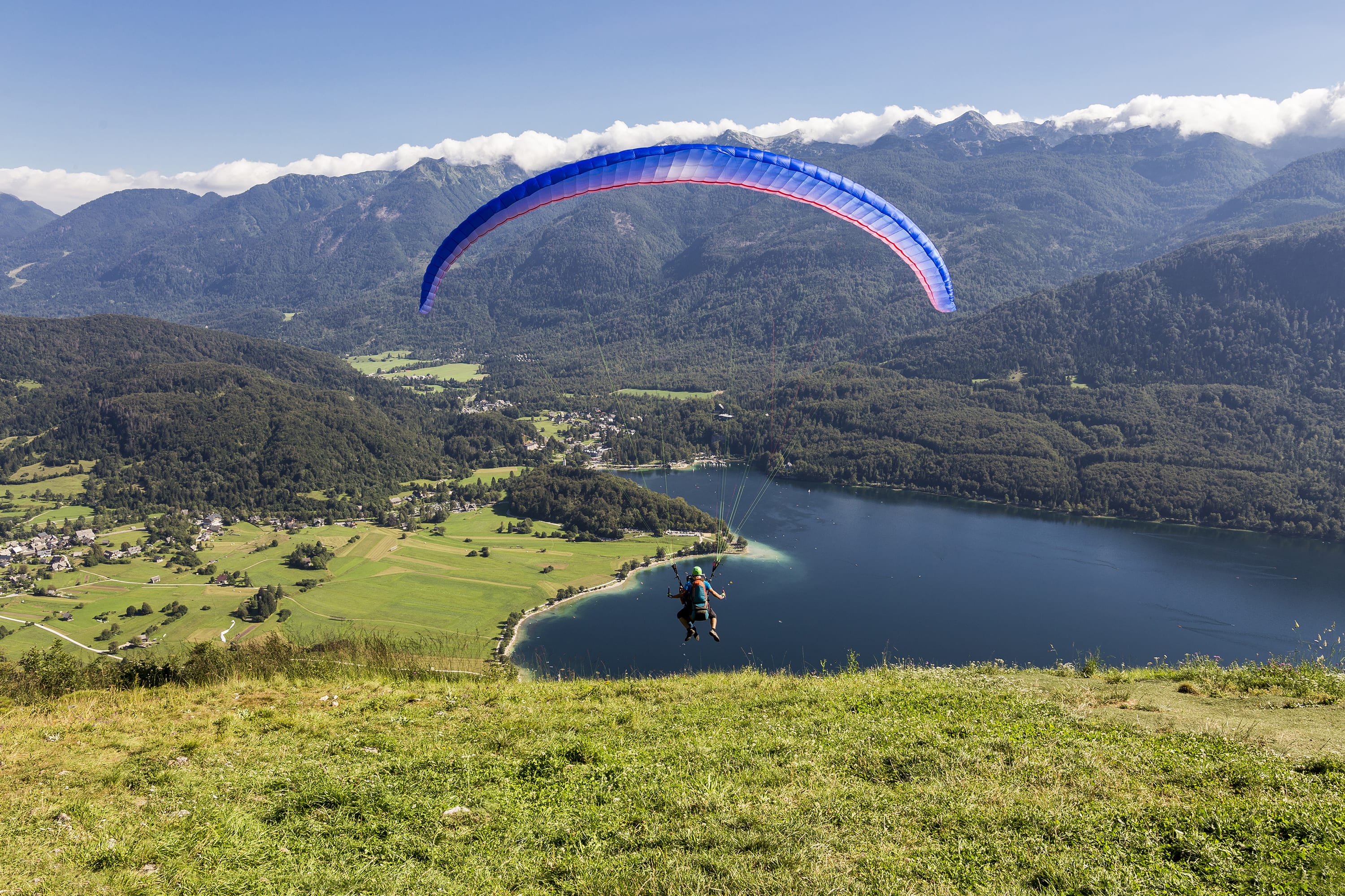 Tandem Paragliding Flight over Lake Bohinj from Vogar (3500 ft)