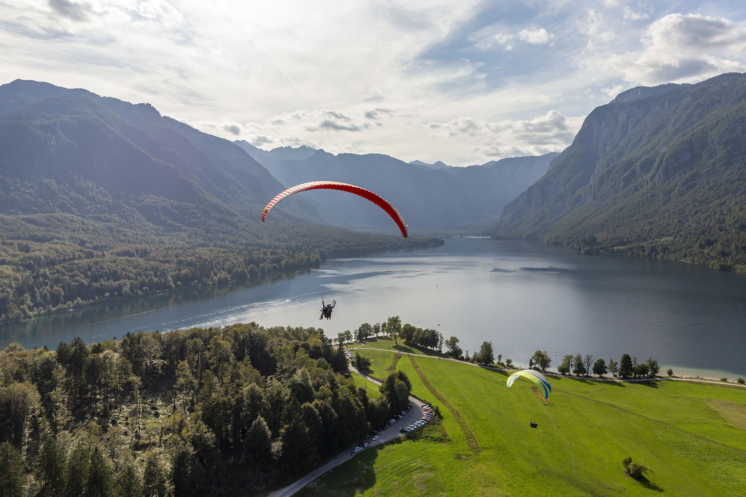 - For 10 to 15 minutes, you'll enjoy a tandem paragliding flight over Lake Bohinj.
