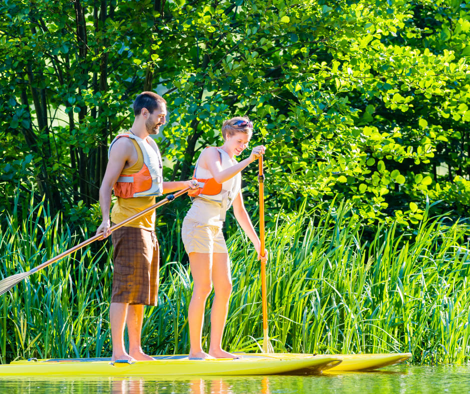 La location de stand up paddle (SUP) à Baie-Saint-Paul est une activité parfaite pour les débutants comme pour les initiés du stand up paddle ! Entouré des sublimes paysages naturels de Charlevoix, vous prendrez le temps de vous ressourcer dans le calme des montagnes pendant votre location de SUP sur la rivière du Gouffre et le fleuve Saint-Laurent.