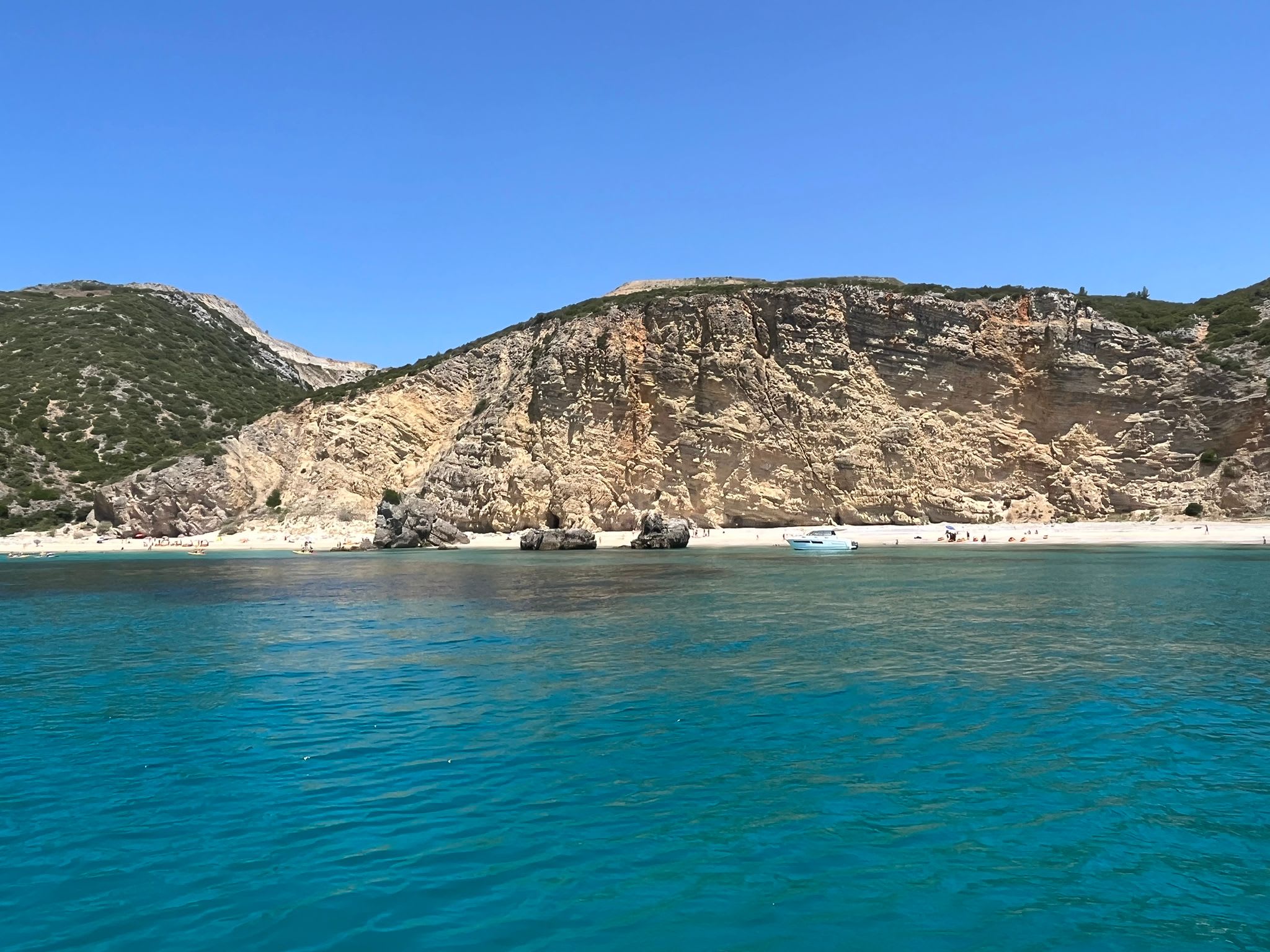 Le Parc naturel de l'Arrábida est un incontournable pour les amoureux de la nature près de Lisbonne ! Avec ses plages sauvages, son littoral pittoresque et ses eaux translucides, ce site naturel et préservé invite à la contemplation et à la relaxation. Cependant, si vous souhaitez découvrir les plages du parc naturel de l'Arrábida, il vous faudra soit faire une randonnée, soit prendre un bateau car les plus belles plages ne sont pas directement accessibles depuis la route ! Participer à une sortie en bateau au départ de Sesimbra est donc l’option la plus simple et la plus pratique pour voir un maximum de plages en un minimum de temps ! A bord d’un bateau confortable pouvant accueillir un maximum de 6 personnes, vous pourrez vivre une expérience agréable et conviviale en petit comité.